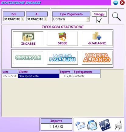 | Grafici e report trattamenti effettuati per cliente, per operatore, per prodotti venduti |