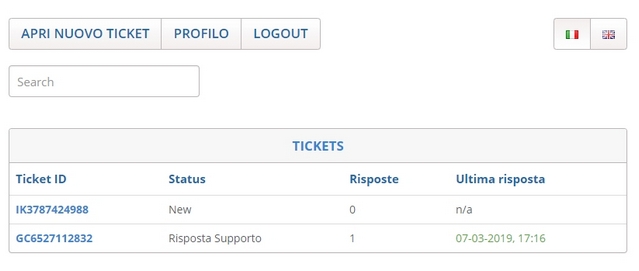 I clienti possono comunicare con il personale, seguire e leggere le risposte dei ticket da un'area profilo protetta da password sul front-end.