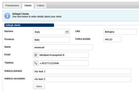 Opzioni per i campi richiesti nella compilazione del modulo di prenotazione :